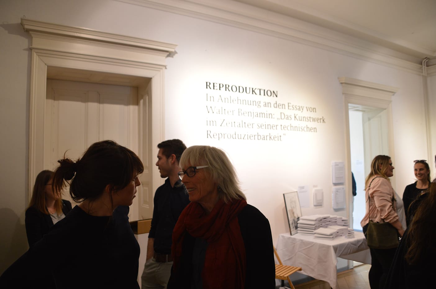 Die Ausstellung REPRODUKTION setzt sich mit WALTER BENJAMINs Thesen zur Nutzung von künstlerischen Reproduktionstechniken und deren Wirkung auseinander. Er beschreibt die ästhetischen, geschichtlichen und sozialen Prozesse, die damit einhergehen. Gleichzeitig wird ein Einblick in die Entstehung und Fortentwicklung der diversen Druck- und Reproduktionsmedien geboten.